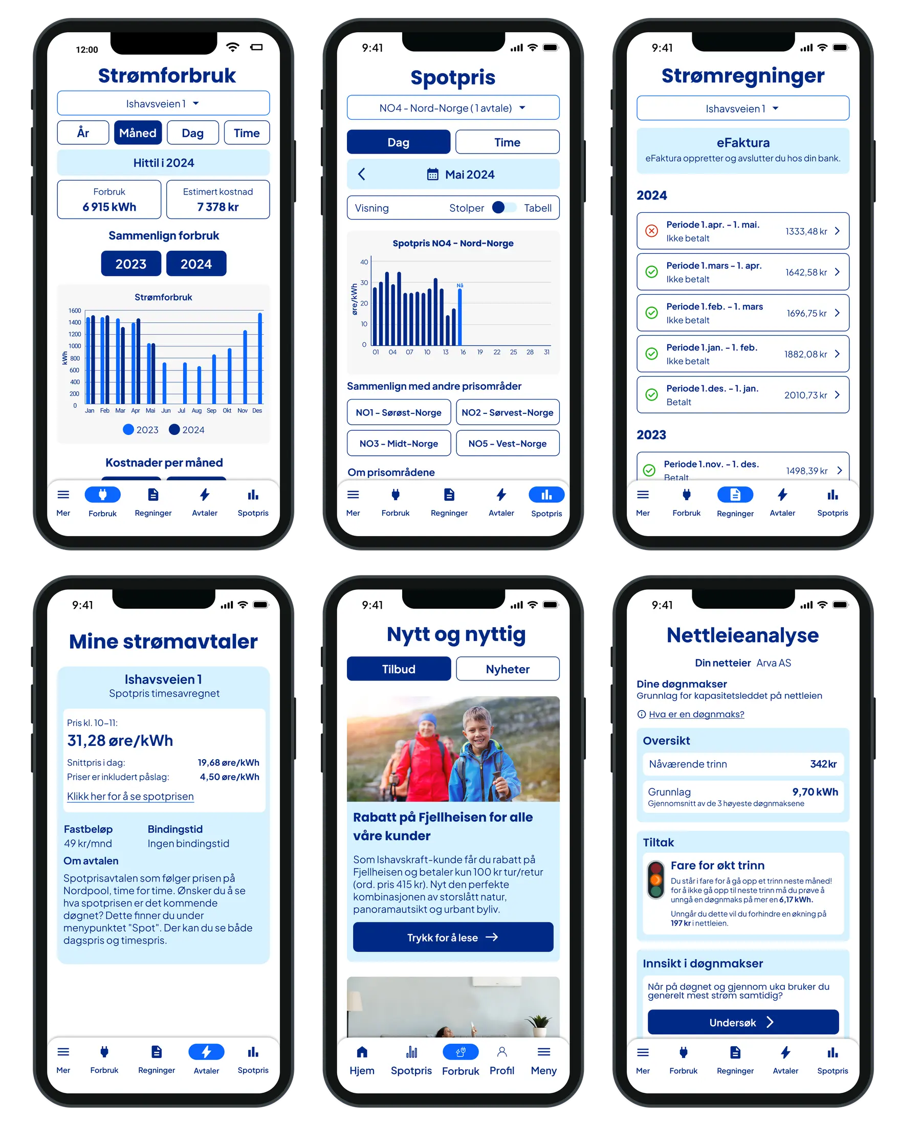 Etter at du har logget inn, får du full oversikt over strømforbruket ditt, strømregninger, spotprisene og mye mer – alt på ett sted.