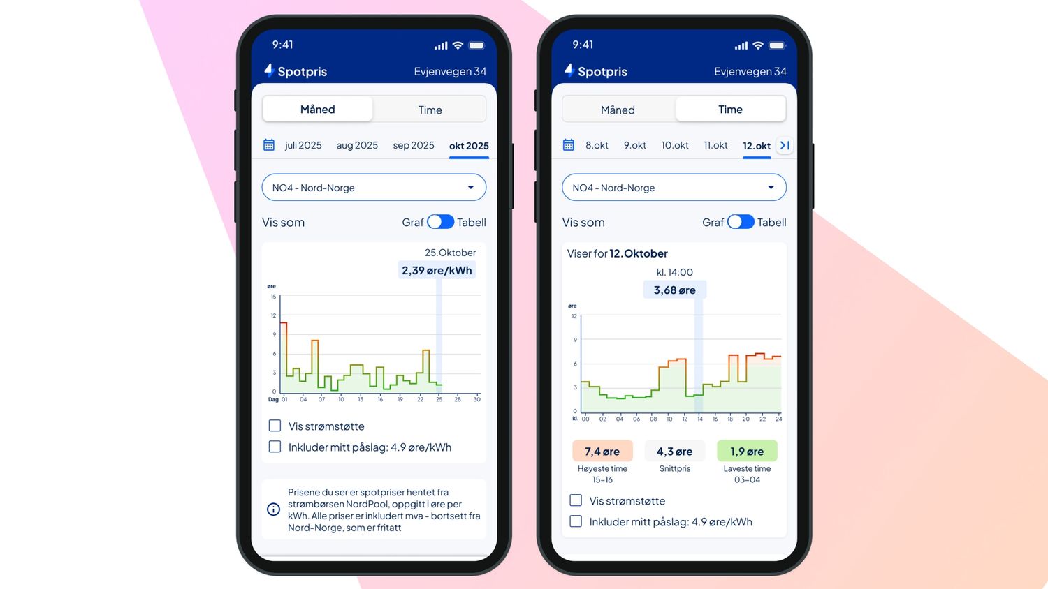 Etter at du har logget inn, får du full oversikt over strømforbruket ditt, strømregninger, spotprisene og mye mer – alt på ett sted.