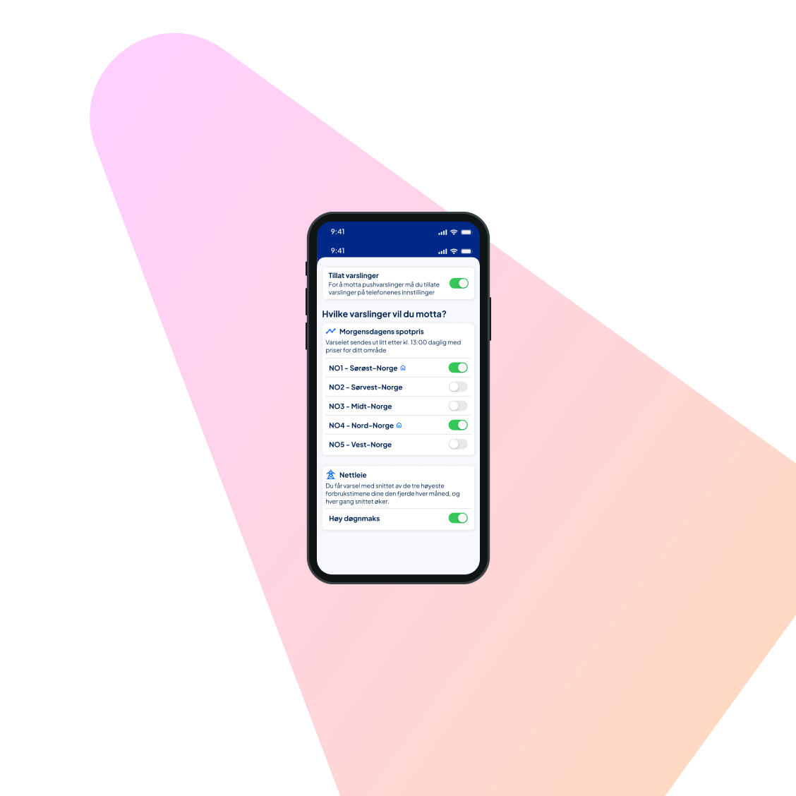 Ishavskraft-appen varsler deg om både spotprisen og nettleia. Hver dag får du morgendagens spotprisen rett på mobilen så snart de er klare. Du velger selv velge hvilke prisområder du vil abonnere på, for eksempel hvis du har hus og hytte i ulike deler av landet.