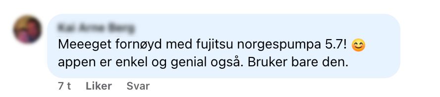 - «Min anbefaling er uten tvil at den er en kjempegod investering. Jeg snakker positivt om opplevelsen med varmepumpa rett som det er. Og som nevnt, burde vi ha montert pumpen tidligere. Nå bruker jeg ovnen bare til kos.» - Publisert: 5.6.2024