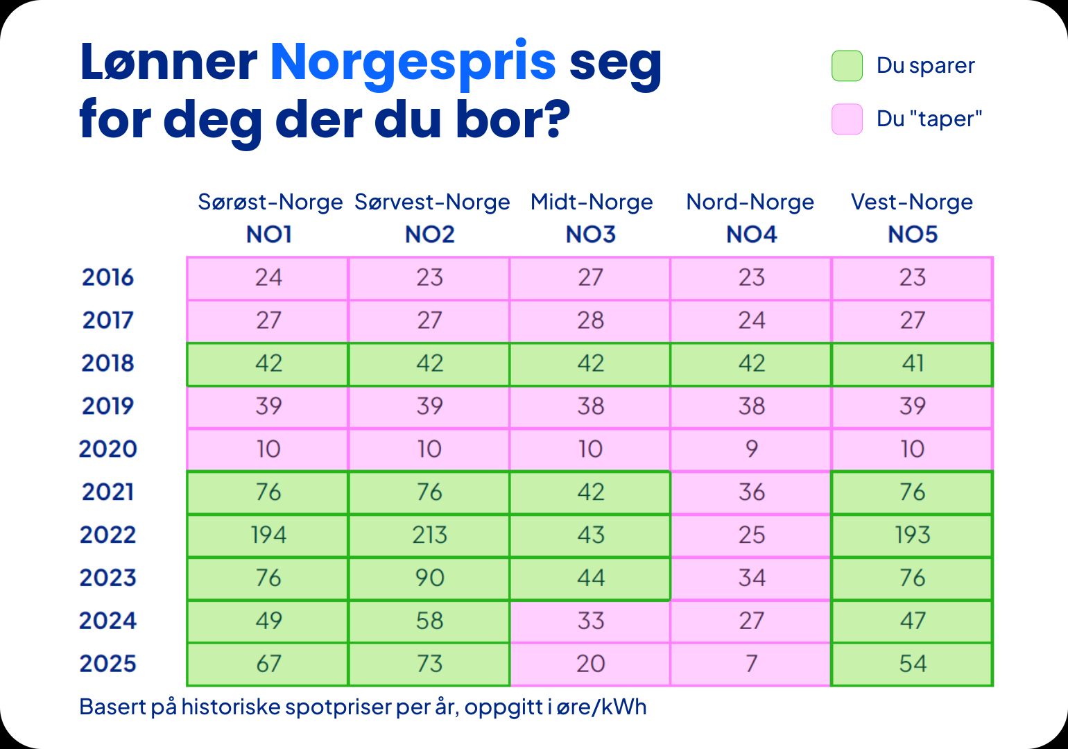La oss ta et blikk på de historiske spotprisene – lønner Norgespris seg for deg der du bor?