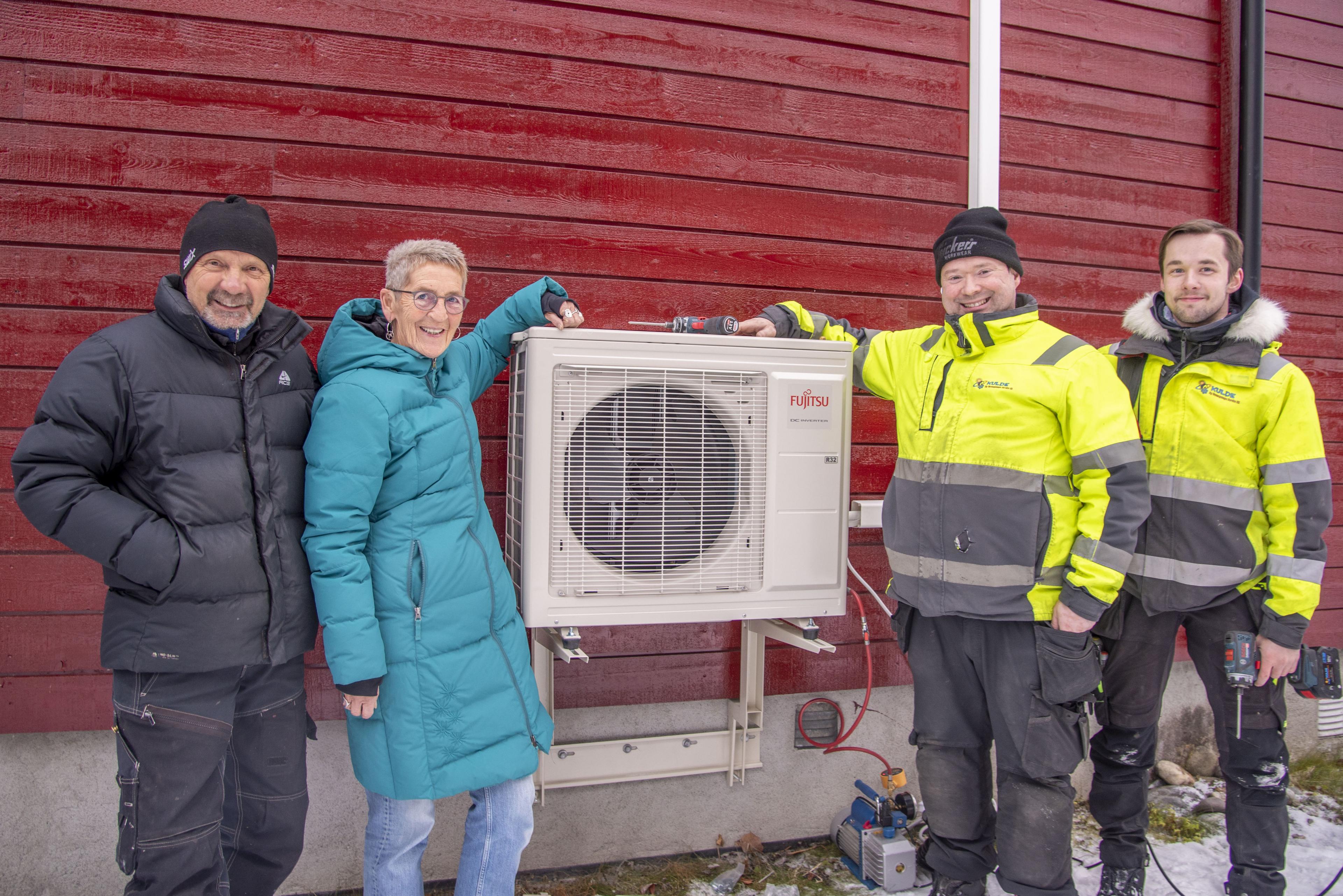 Tirsdag 14. november var Ishavskrafts montører i Alta, Kulde og Varmepumpe Service AS, på plass på Aronnes for å montere den nye varmepumpen til vinnerparet. Etter bare to timer var den klar til bruk.