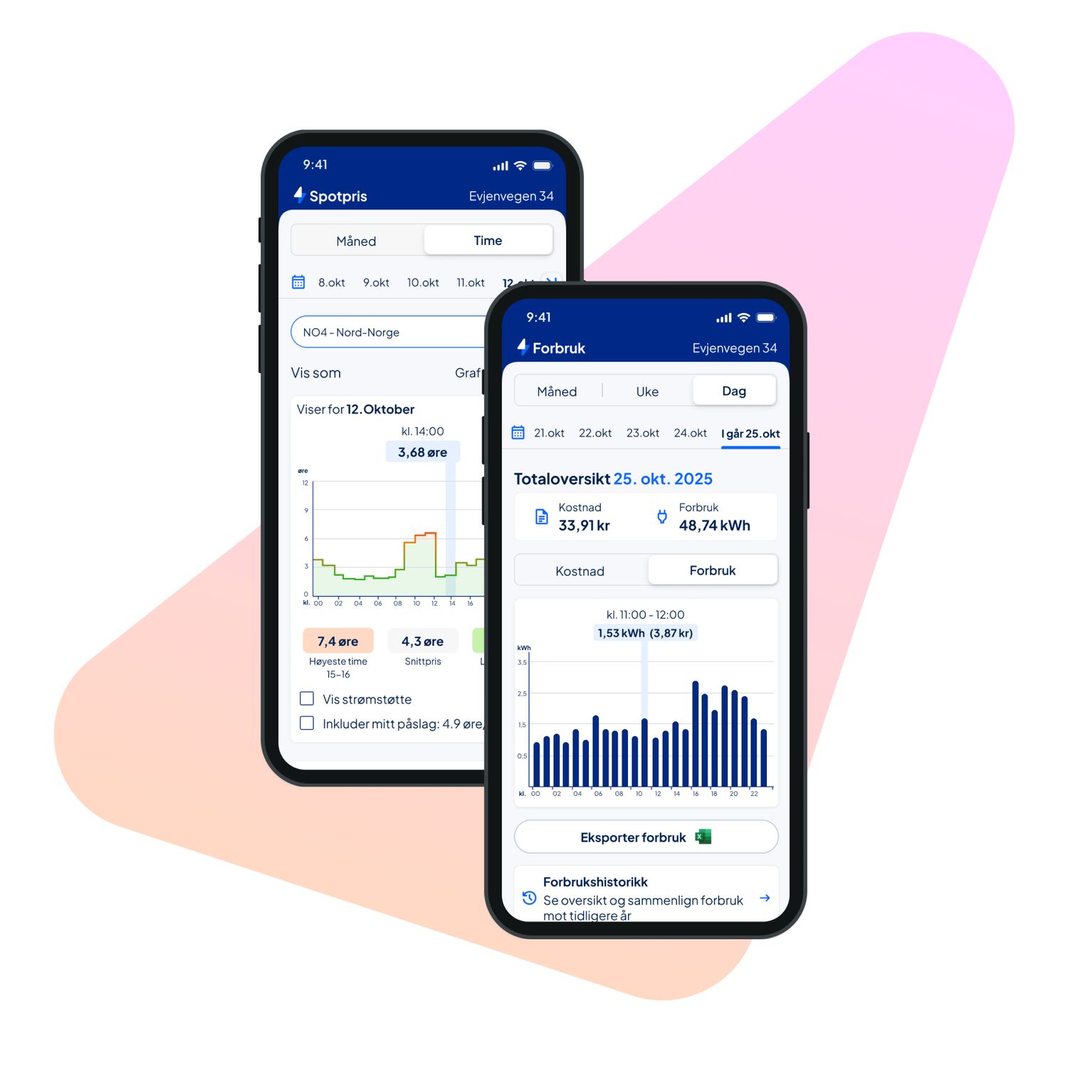 Gjør som flesteparten av kundene våre og last ned Ishavskraft-appen – selvfølgelig helt gratis! Med appen kan du enkelt følge med på strømforbruket ditt, se dagens spotpris og beregnet strømstøtte, samt få full oversikt over strømregningene dine – uansett hvor du befinner deg. I tillegg gir appen deg tilgang til analyser av strømforbruket ditt, slik at du kan ta smarte grep for å spare penger hver måned, både på strøm og nettleie.